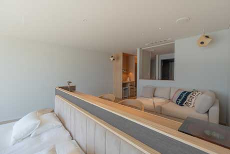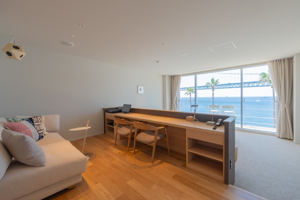 103平米の広々とした別邸スイートルーム。海を180度見渡すテラスやリビングルームなど、プライベート感たっぷりのくつろぎの空間が充実。