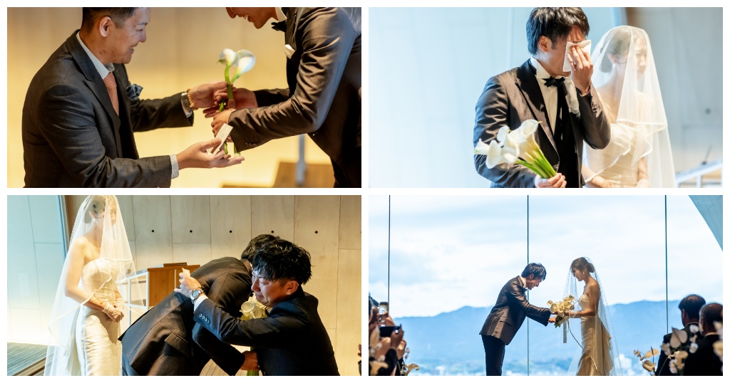 誓いのことばの問いかけとともに お花をお預かりして