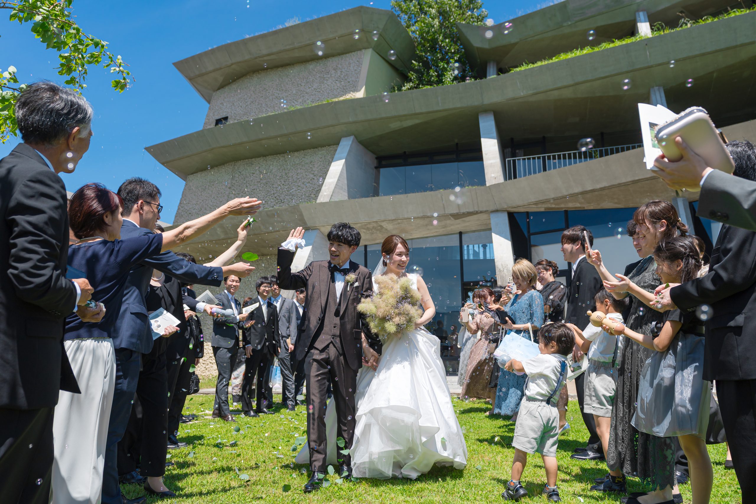 爽やかな夏の青空の下 ケーキのセレモニーを。