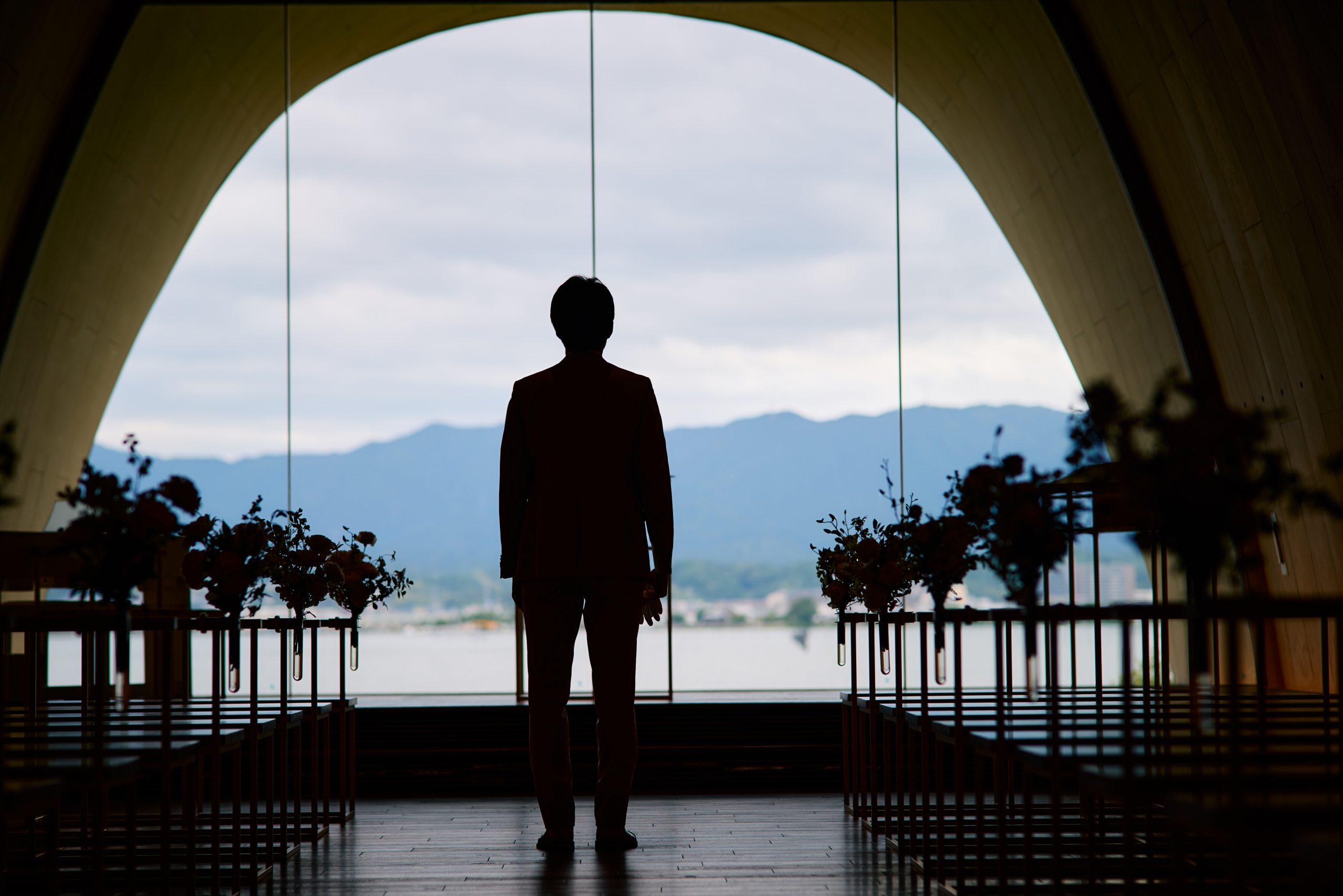 お色直しのご入場は 雄大な琵琶湖を望むガーデンから。