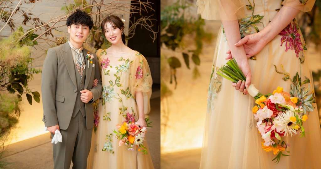 ナチュラルな会場の雰囲気にぴったりのコーディネート。