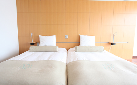 ベッドを2つ隣り合わせにしたハリウッドタイプ。カップルの方、夜通し語りたい方に。ベッドは自由に動かすことも可能です。