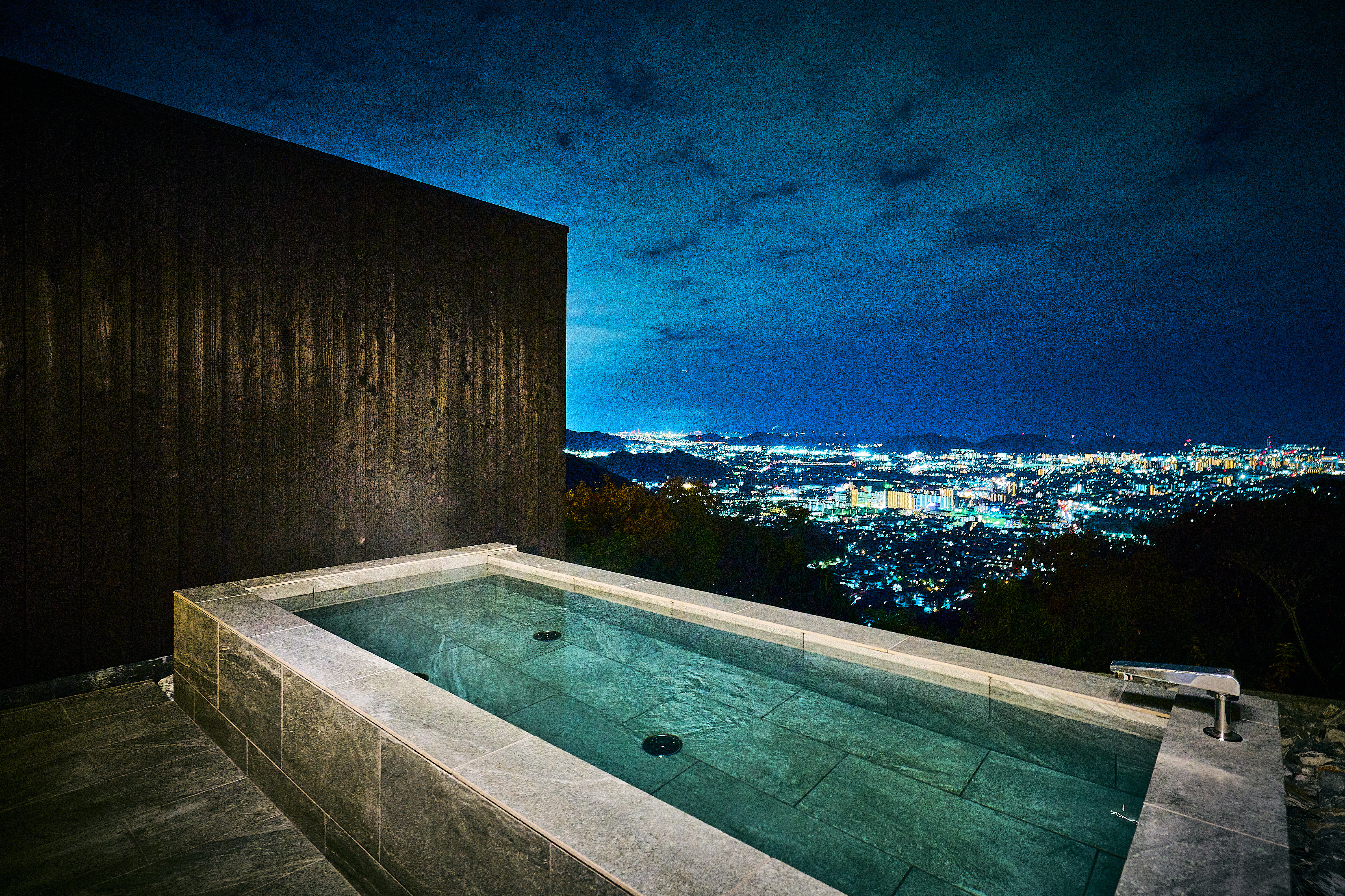 播磨平野や瀬戸内海の絶景を一望できる癒しの空間で静寂に包まれながら身体の芯から温まり、自然の美しさを満喫。