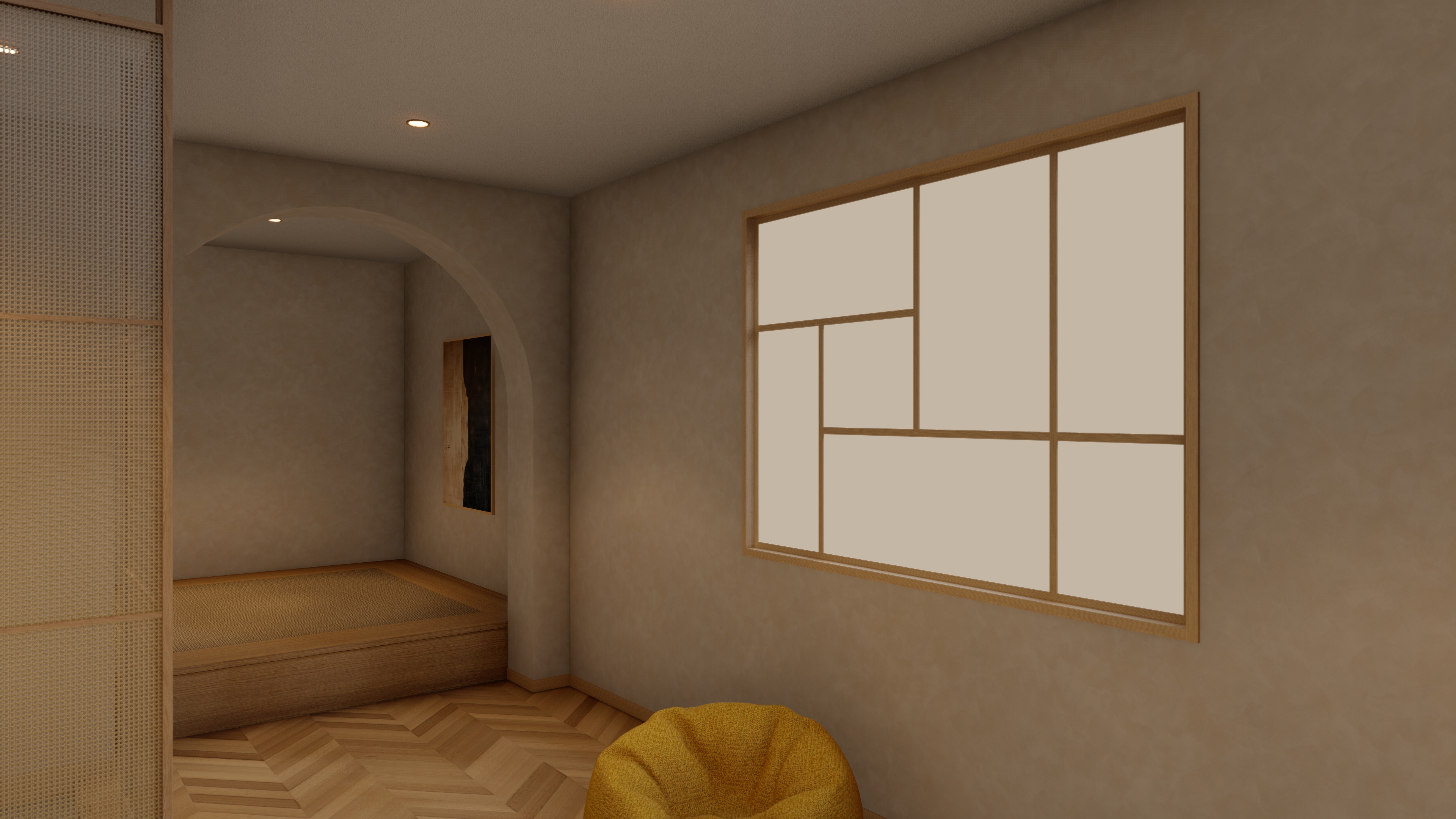 和紙を施したガラス張り、四畳半の空間。静穏なスペースを独占して、ゴロ寝や読書などひとりきりの時間を満喫していただけます。(予約制)