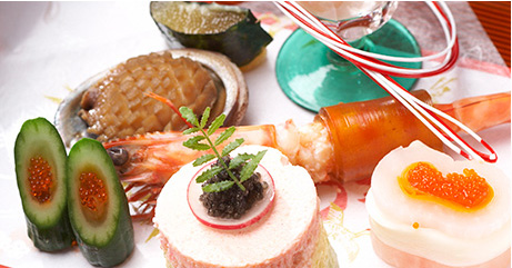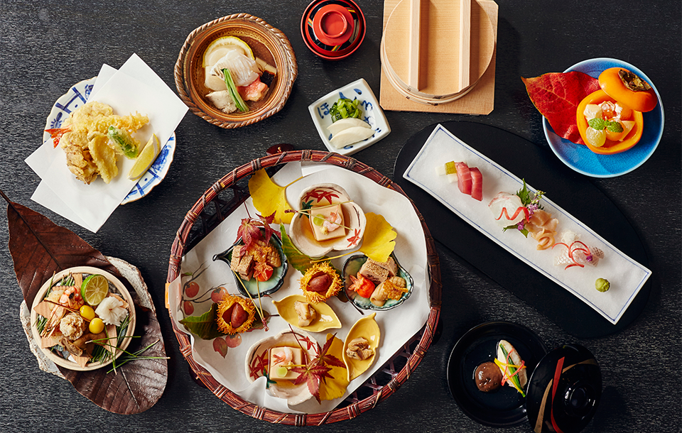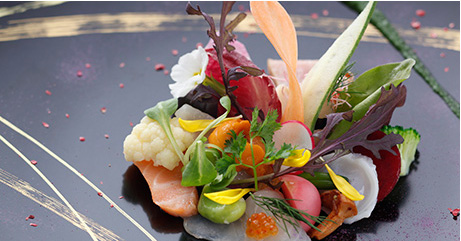 テーマは「出逢い」。食材や人、もの、和食と洋食など様々な出会いがあるから繋がれるということを表現したディナー。料理長をはじめ、スタッフが生産者を訪れ、出会った豊かな山、大地、海が育む四季折々の地域の恵みに新たな“出逢い”をつくりだします。