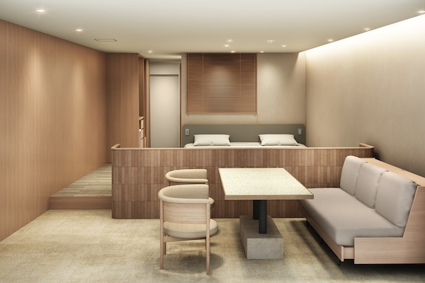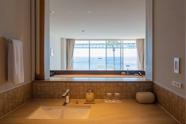 103平米の広々とした別邸スイートルーム。海を180度見渡すテラスやリビングルームなど、プライベート感たっぷりのくつろぎの空間が充実。