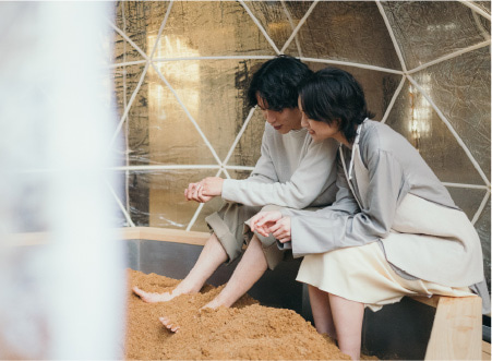 and objects but also wood powder and rice bran create a unique healing experience