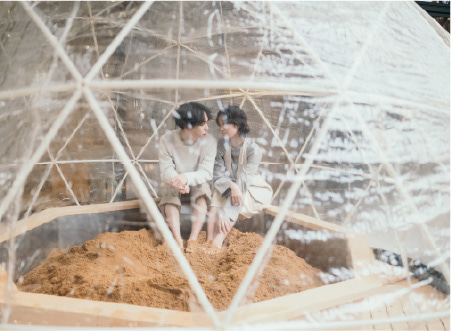 The dome is filled with the scent of carefully selected solid Japanese cypress from Yoshino, Nara.
