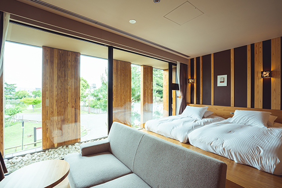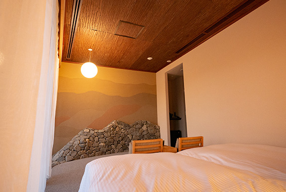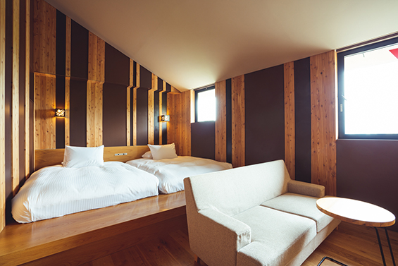 With Japanese cedar and cypress from Yoshino, Nara, and earth of Tsukigase, and more.... Setre Naramachi has been built using raw materials nurtured over the years in Nara and by employing traditional techniques. The timber of Yoshino has not just been used in architecture, but also to make original furniture. Bountiful nature that has been used to create Setre provides ultimate places to relax, as if you were forest bathing.