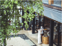 ホテルの中央に配した枝垂れ桜が